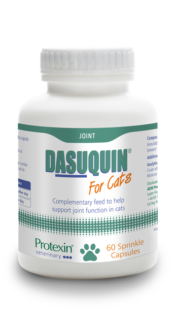 Protexin Dasuquin Cats. Täiendsööt kassidele. Dasuquin on täiustatud liigeste tervise toidulisand kassidele, mis sisaldab ainulaadset koostisosa ASU (Avokaado–sojaebadeemne fraktsioon), mis toidab ja aitab toetada liigeste kõhre, aidates neil säilitada normaalset liikumist. Dasuquin toetab kasside liigeseid, säilitades normaalse arhitektuuri ja pakkudes olulisi toitaineid.